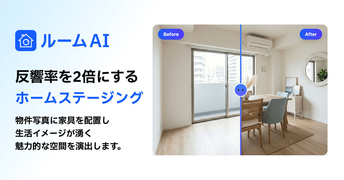 【業界最安級】1枚98円〜で空室がモデルルームに。AIホームステージング「ルームAI」提供開始。 ~反響率114%増*の期待も。月額9,800円の定額制で、仲介・管理会社の「客付力」を底上げ~